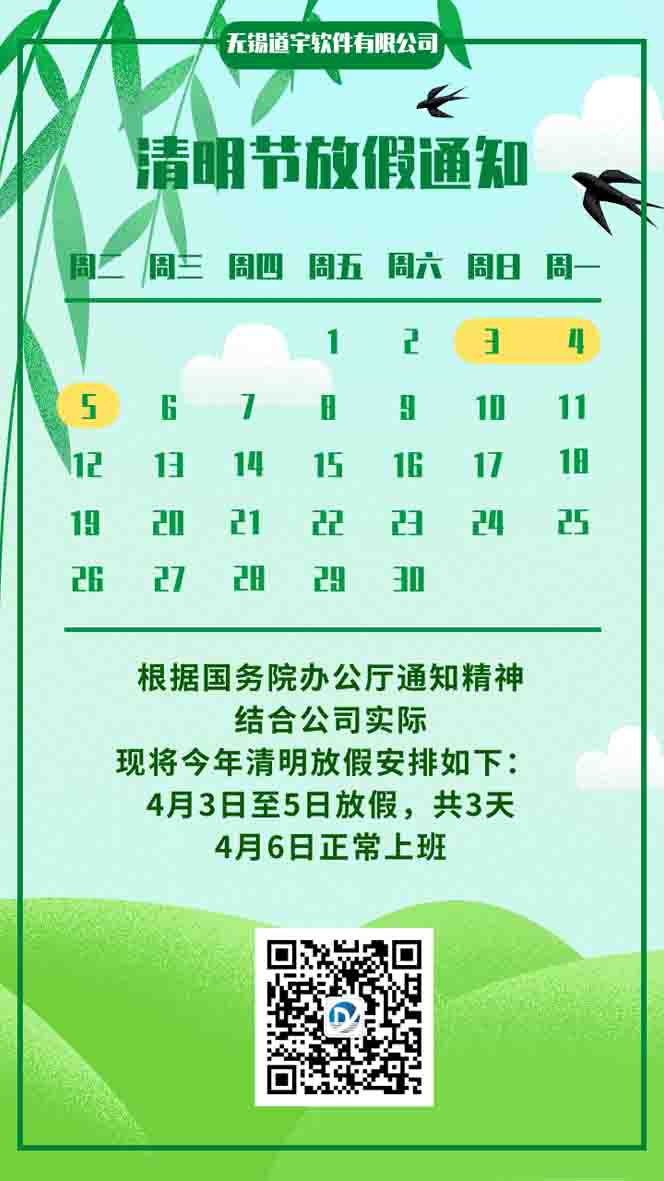 道(dào)宇動态 | 清明(míng)節放(fàngδ÷)假通(tōng)知(zhī)
